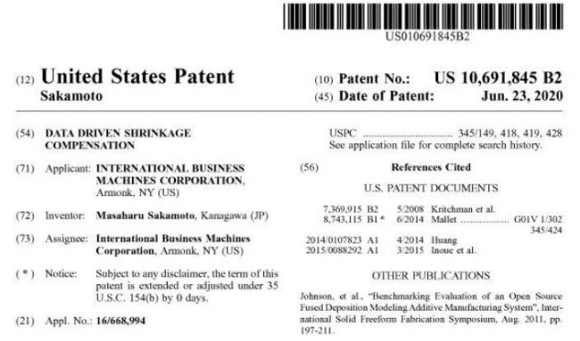IBM开发的方法还包括通过尺寸变化预测器基于形状收缩模型来预测x方向股,y方向股和z方向股的尺寸变化。通过尺寸变化补偿器校正预定小平面对中至少一个小平面的x坐标数据,y坐标数据和z坐标数据,以补偿x方向,y方向和z方向的尺寸变化。