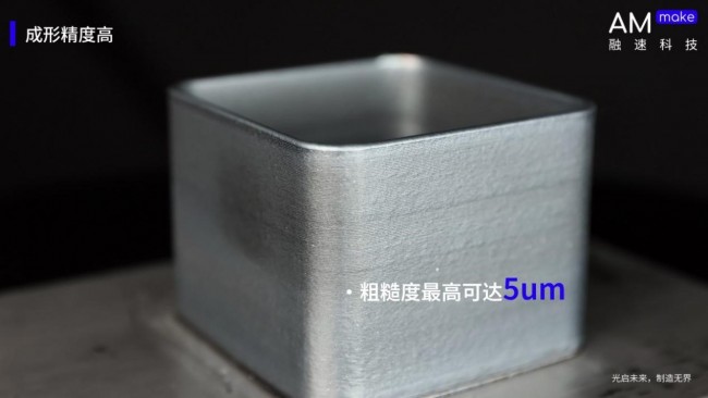 根据融速科技揭示的数据,VEAMTM技术采用多激光同轴送丝,光路灵活可控,光丝耦合性好,加工自由度高,同时6束光斑对熔池产生的光压可细化晶粒,打印件表面粗糙度最高可达5um,可实现复杂结构件一次成型,大大减少后期机加成本,减少产品生产工序,缩短制造周期。